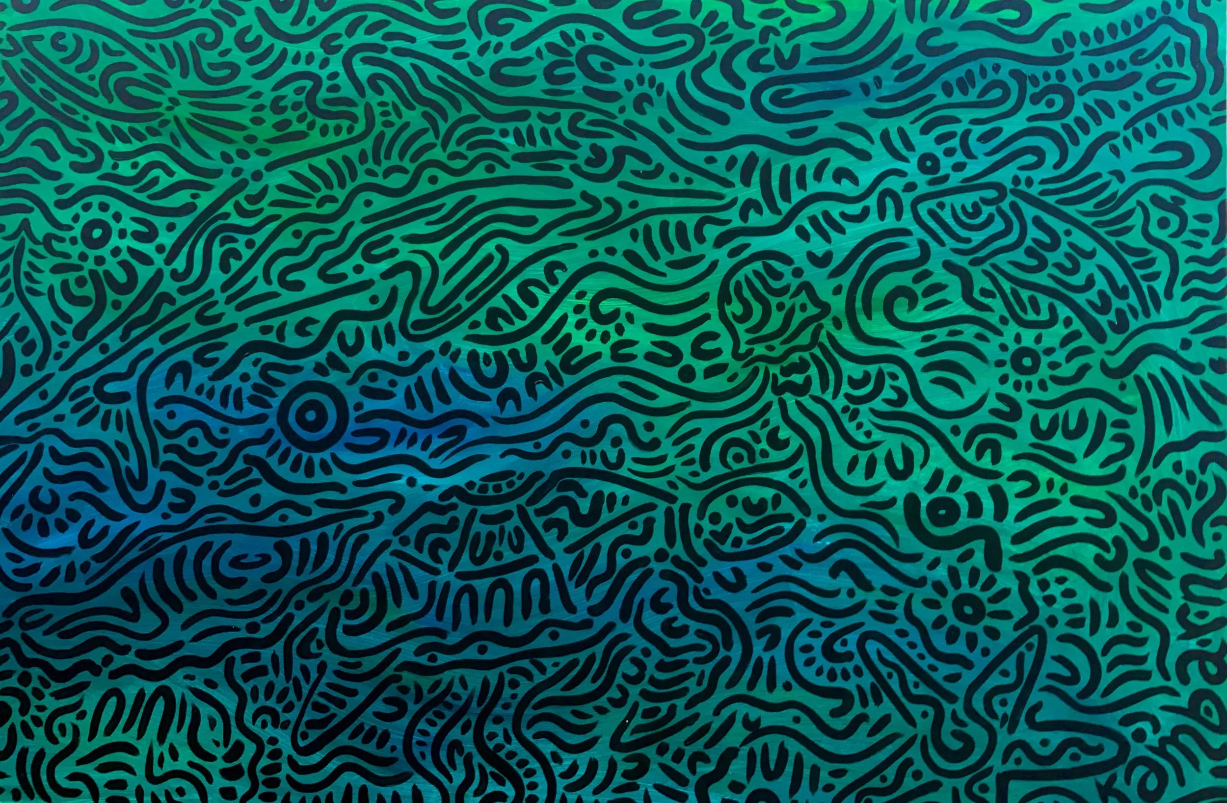 Kambarni is descended from the Numunburr and Yawuru people of the Kimberly and the Ballardong Noongar people of the Perth region in Western Australia. He is an emerging illustrator who reflects the natural world with his intricate designs.